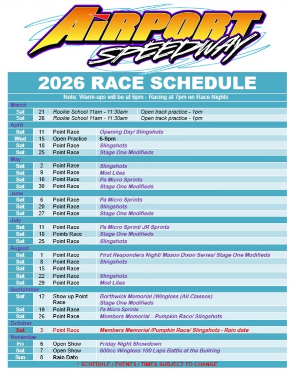 AIRPORT SPEEDWAY UPDATES WEEKLY